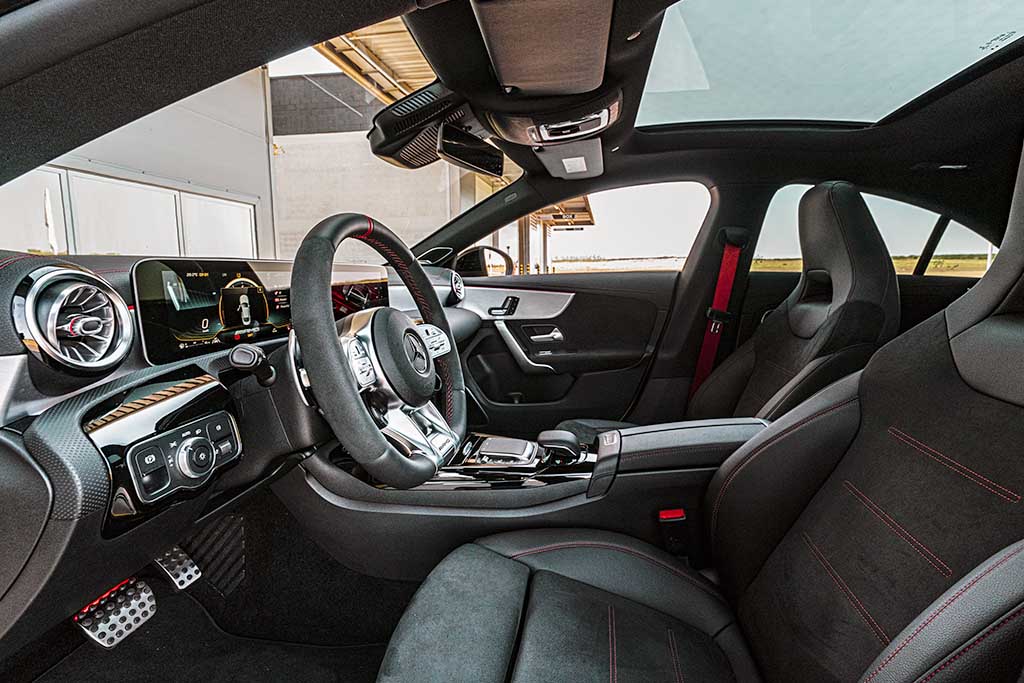 Os carros oferecem seis modos de condução (Slippery, Comfort, Sport, Sport+, Race e Individual), central de áudio MBUX, bancos revestidos com microfibra e mostradores esportivos no painel.