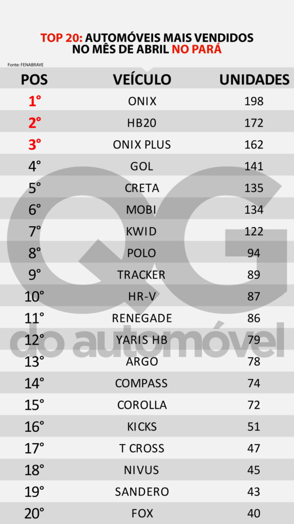 TOP 20 AUTOMÓVEIS MAIS VENDIDOS EM ABRIL DE 2021