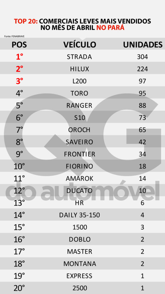 TOP 20 COMERCIAIS LEVES MAIS VENDIDOS EM ABRIL DE 2021
