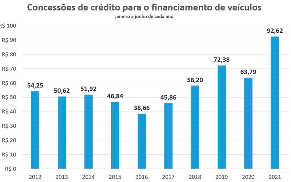 Segundo o Banco Central, neste primeiro semestre tivemos quase R$ 93 bilhões em concessões para a aquisição de um veículo, o que gerou um crescimento de 45% sobre o ano passado!