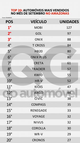 OS AUTOMÓVEIS MAIS VENDIDOS EM SETEMBRO NO AMAZONAS
