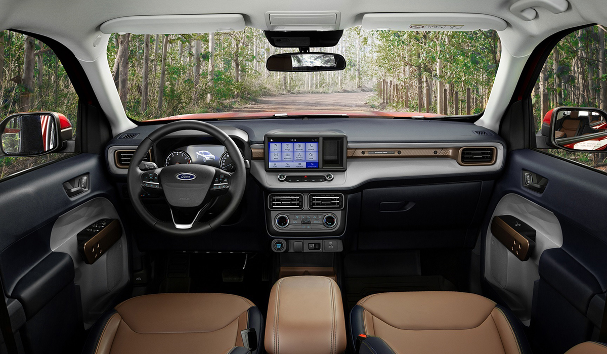 O painel digital, o volante multifuncional, o console, os bancos com acabamento em duas cores e a tela multimídia de 8” são outros itens diferenciados da cabine. Como os demais modelos da marca, a Maverick terá conectividade de série com o aplicativo FordPass, que coloca informações e comandos remotos na palma da mão para facilitar a vida do usuário e criar uma interação completa com o veículo.