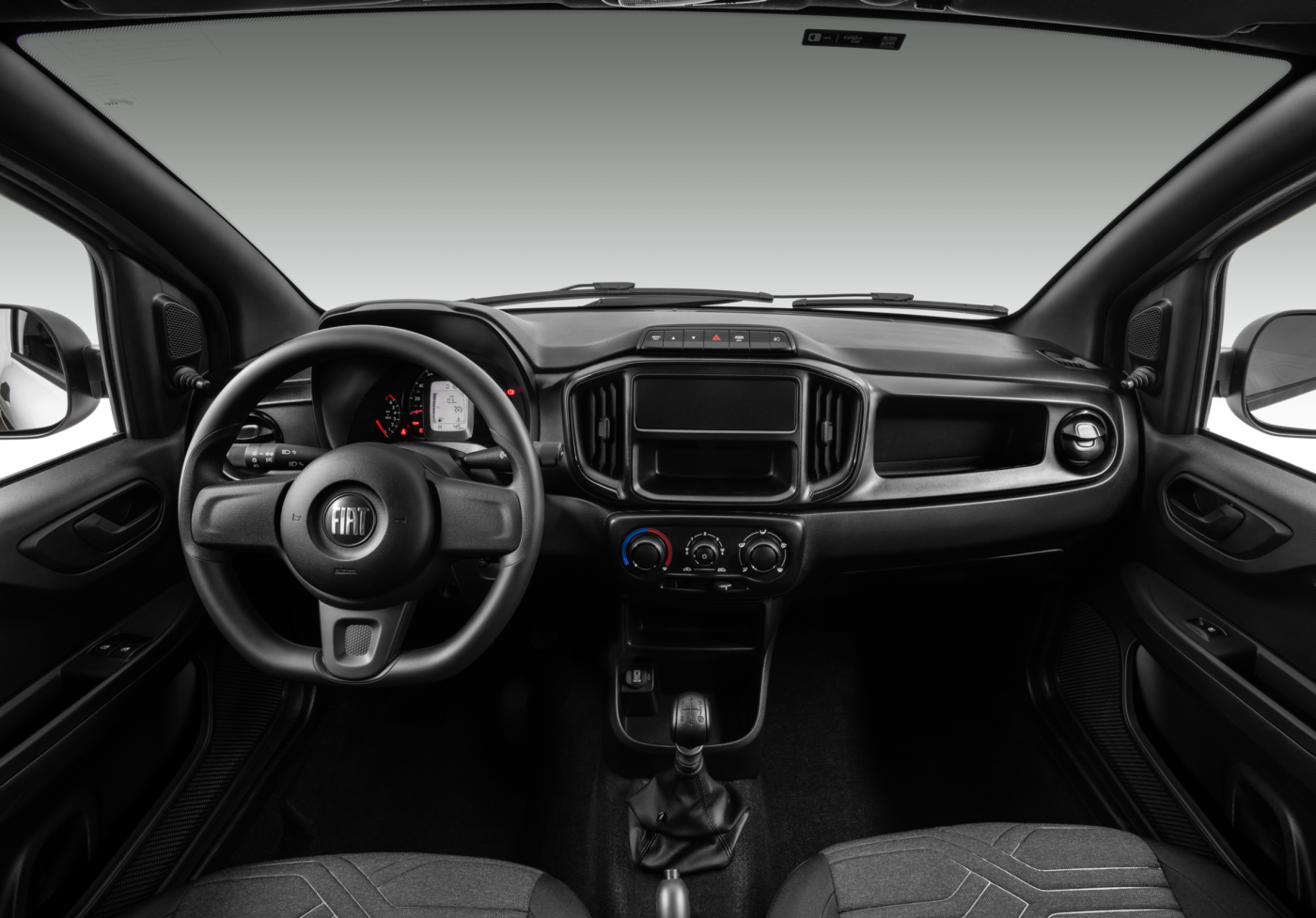 O interior confortável e funcional ganhou painel completamente reformulado com saídas de ar-condicionado retangulares. O novo cluster inclui computador de bordo com seis funções, conta-giros e hodômetro parcial digital. Com regulagem de altura de série, o volante agora adota o Logo Script. O habitáculo recebeu tons escurecidos e mais 4 porta-objetos, totalizando 13 compartimentos, que somam 18,3 litros — 10% mais volume que o modelo anterior. Entre eles está o exclusivo espaço para máquina de cartão na porta, além da área acima do porta-luvas iluminado e nos novos painéis de portas, demonstrando a versatilidade da cabine como característica essencial para o uso profissional, que sempre foi o foco do veículo.