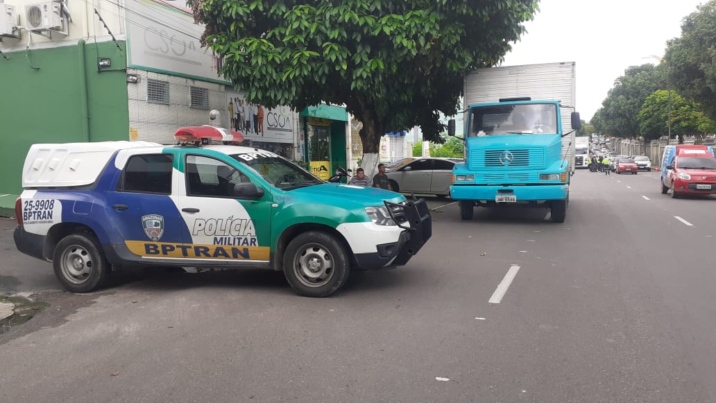 Ação foi iniciada, por volta das 9h30, na Avenida Rodrigo Otávio, bairro Japiim, na zona Sul da cidade, com o objetivo de coibir irregularidades envolvendo veículos pesados.