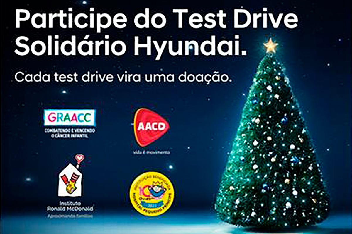 A Hyundai e sua Rede de Concessionárias realizam, até o dia 20 de dezembro, a campanha “Test Drive Solidário”. Para cada teste realizado em qualquer modelo das linhas HB20 ou Creta, nas mais de 220 lojas distribuídas por todo o País, a montadora sul-coreana vai doar R$ 60 para as entidades participantes.