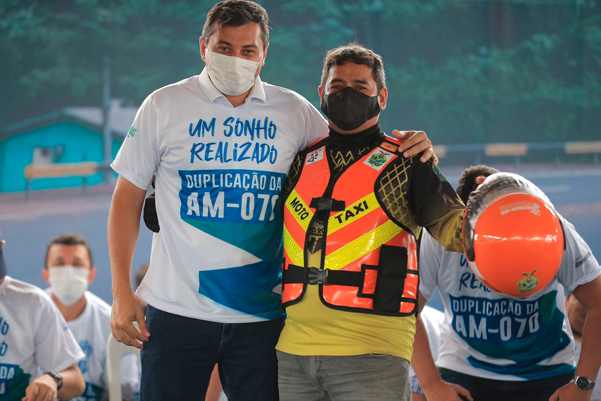 O governador Wilson Lima deu início, nesta segunda-feira (20/12), à entrega de 260 kits de segurança, com capacete e colete, para mototaxistas de Manacapuru (a 68 quilômetros de Manaus) beneficiados pelo projeto Mototaxista Legal. Realizado pelo Governo do Amazonas, o projeto é coordenado pelo Departamento Estadual de Trânsito (Detran-AM). As entregas ocorreram durante a inauguração das obras de duplicação e modernização da AM-70, rodovia que interliga a capital a Manacapuru. Na ocasião, os profissionais foram pré-cadastrados para terem acesso ao crédito de R$ 5 mil junto à Agência de Fomento do Estado do Amazonas (Afeam).
