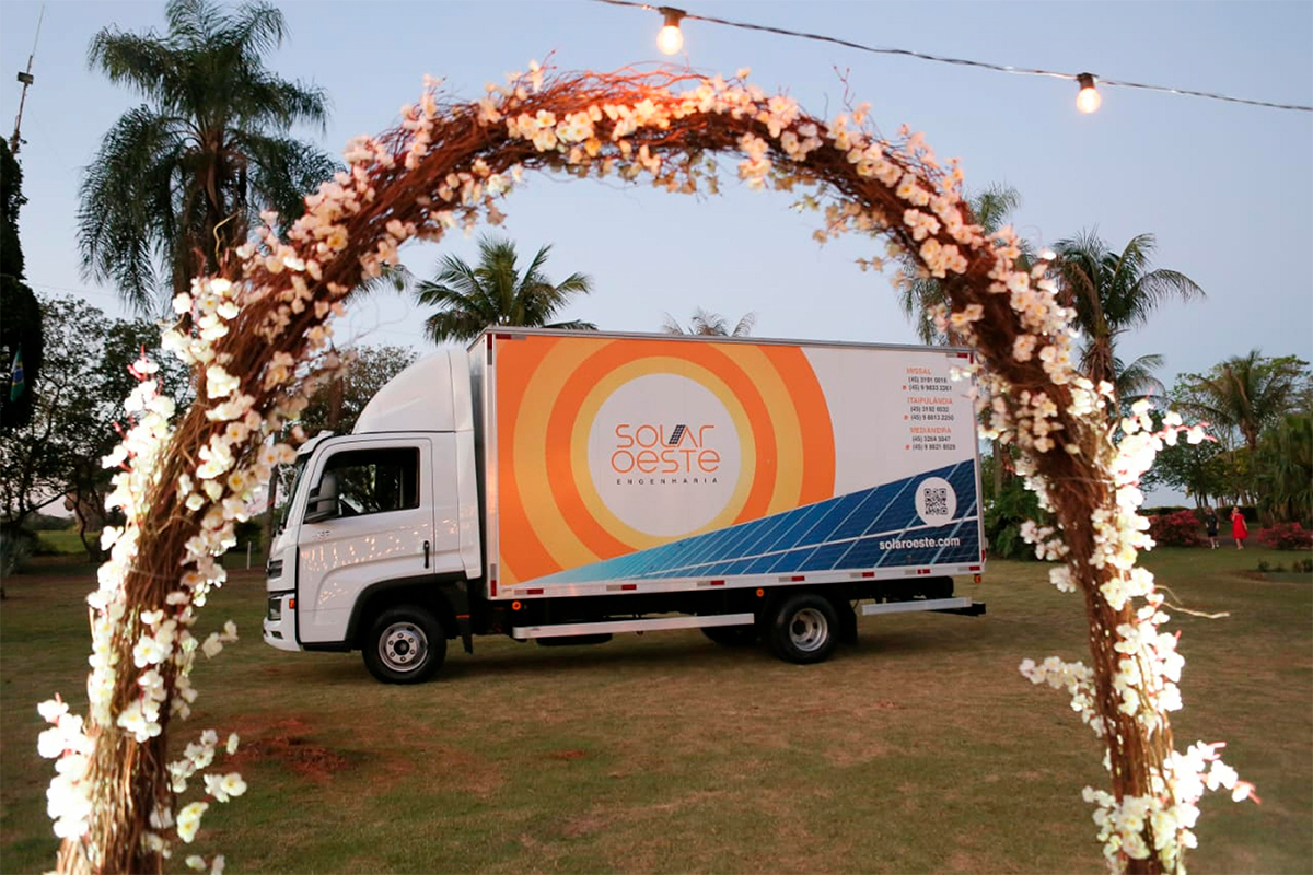 Segundo Márcia, a ideia inusitada foi uma forma de comemorar a conquista da sua carteira de habilitação tipo D, que permite a condução de caminhões – peça fundamental para o sucesso da Solar Oeste, criada com o noivo Josenei Godoi. A companhia, com sede em Missal (PR), tem como objetivo oferecer soluções para a geração de energias renováveis.