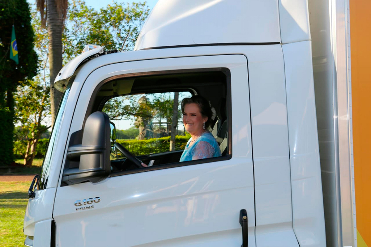 “A Volkswagen Caminhões e Ônibus nos ajuda a cumprir a missão da nossa empresa: eles levam nossos produtos que transformam a vida das pessoas, e isso fez com que eu entrasse a bordo do caminhão. É uma marca que nós confiamos”, comenta a noiva.