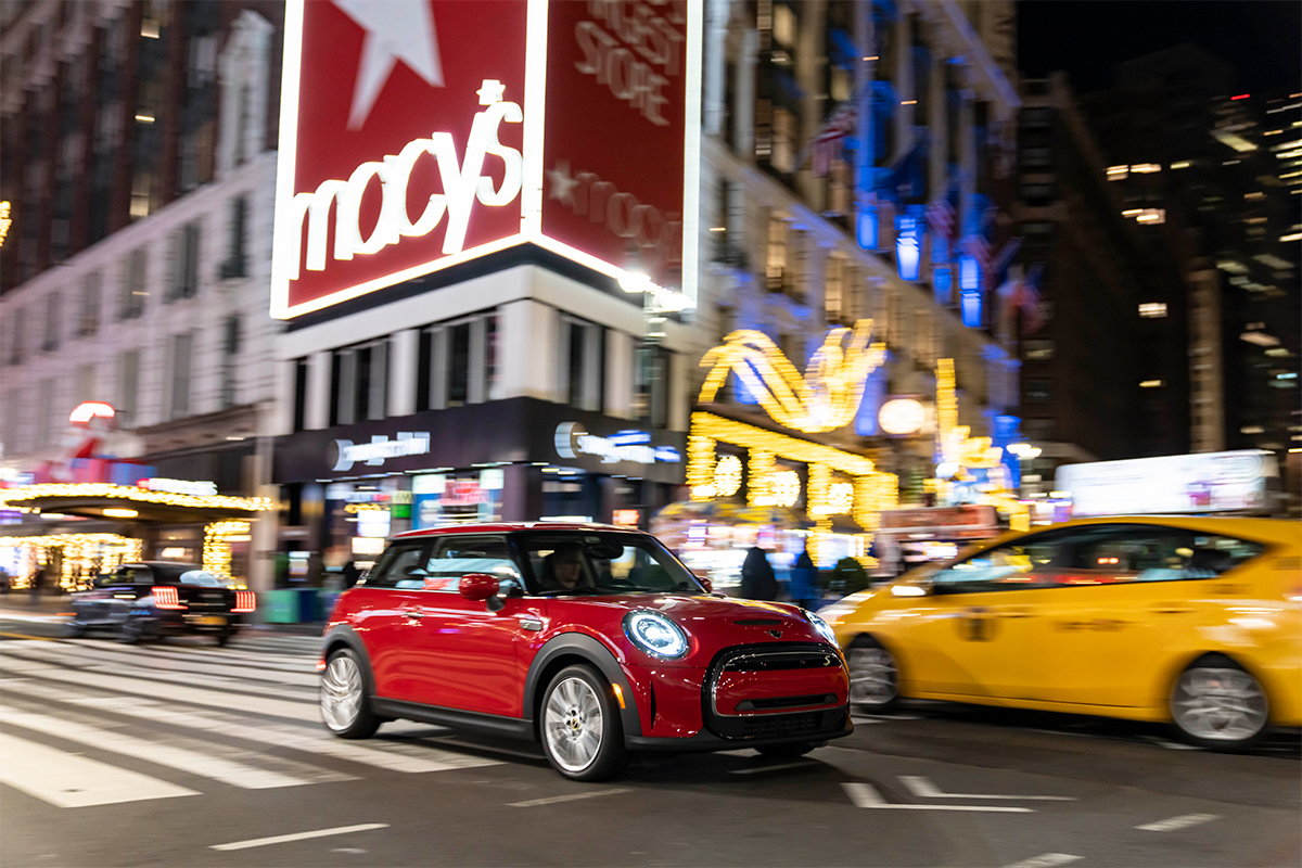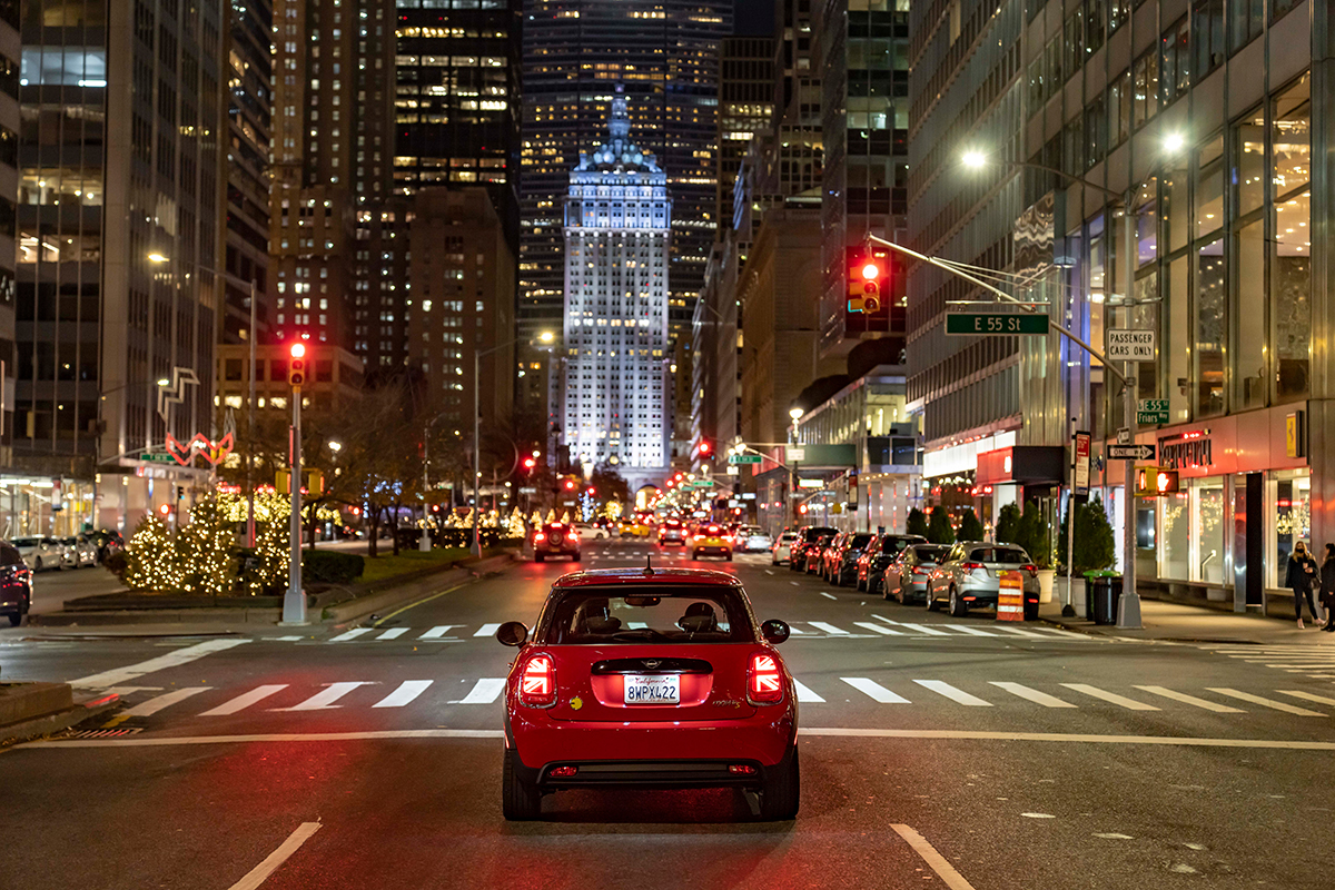 Pelas ruas de Manhattan, o MINI Cooper S E atrai olhares pelo seu design icônico e temperamento esportivo. Seu motor elétrico de 184cv é capaz de levá-lo de zero a 60km/h em apenas 3,9 segundos ao arrancar nos semáforos, um mérito dividido com o torque instantâneo de 270Nm. A diversão ao dirigir é garantida. E quando tudo está muito silencioso, pedestres e ciclistas são alertados da aproximação do carro por um som especialmente feito para o MINI elétrico, um aviso que é transmitido aos alto-falantes externos em baixas velocidades.