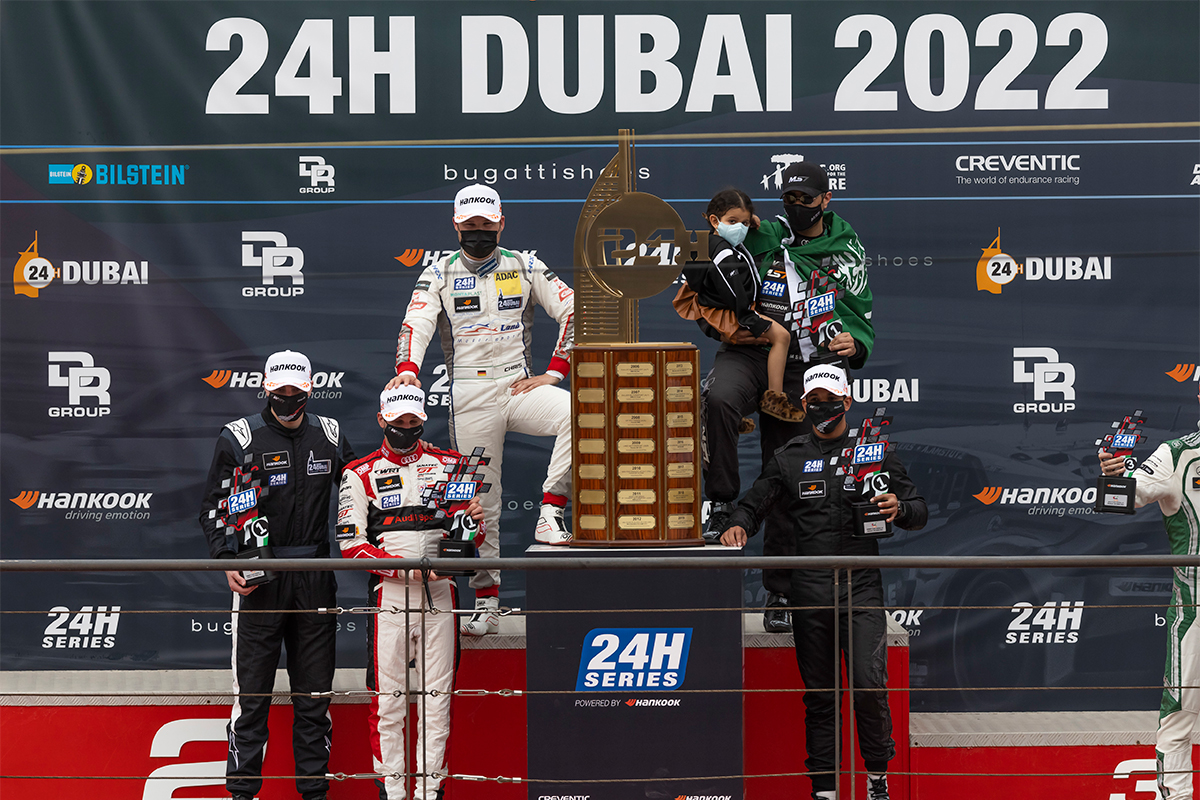 Pela terceira vez após 2019, uma equipe da Audi venceu a tradicional abertura da temporada de resistência em Dubai. A equipe WRT da Bélgica, que conquistou seu primeiro sucesso há seis anos, comemorou uma dobradinha convincente. Mohammed Saud Fahad Al Saud/Axcil Jefferies/Christopher Mies/Dries Vanthoor/Thomas Neubauer venceram à frente de seus companheiros de equipe Benjamin Goethe/Arnold Robin/Maxime Robin/Jean-Baptiste Simmenauer/Frédéric Vervisch. Para a versão GT3 do Audi R8 LMS, esta já foi a décima quinta vitória geral em uma corrida de 24 horas em todo o mundo desde o início do programa em 2009.