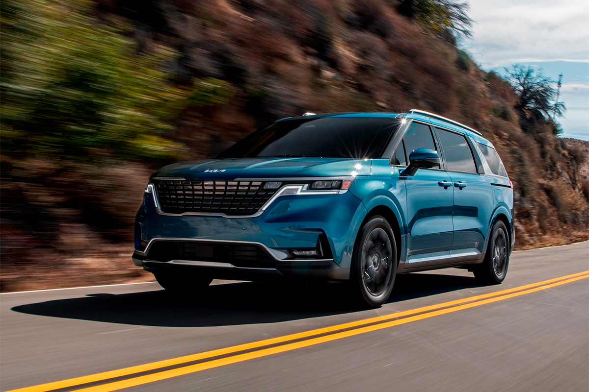 O novo Kia Carnival, por sua vez, desenvolvido no estúdio de design da Kia na Califórnia, tem uma aparência arrojada e quadrada que transmite a linguagem visual encontrada na linha de SUVs robustos de grande sucesso da marca, incluindo Telluride, Sorento e Seltos. Linhas marcantes adornam o capô que ajudam a realçar o caráter agressivo do veículo, enquanto as cavas das rodas bem definidas dão uma sensação de volume ao perfil lateral do Carnival. O interior de três fileiras, disponível em configurações de sete ou oito lugares, oferece um layout premium e flexível, resultando no melhor espaço para passageiros e carga da classe.
