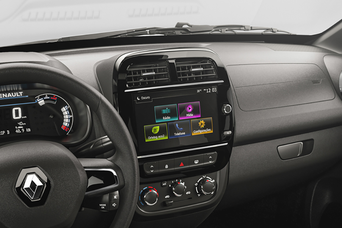 Para facilitar a vida a bordo, a nova central multimídia Media Evolution traz mais tecnologia e conectividade ao condutor. Com uma nova tela maior, agora de 8”, capacitiva e com interface simples e intuitiva, a central oferece espelhamento para celulares com Android Auto e Apple CarPlay, permitindo usar, por exemplo, Spotify, Waze e Whatsapp na tela do multimídia, e botão “push to talk”, além do sistema Driving eco2, que detecta o modo de condução do motorista e fornece dicas facilmente aplicáveis que podem resultar em uma economia de combustível de até 20%. Uma novidade aqui é o indicador de temperatura externa.