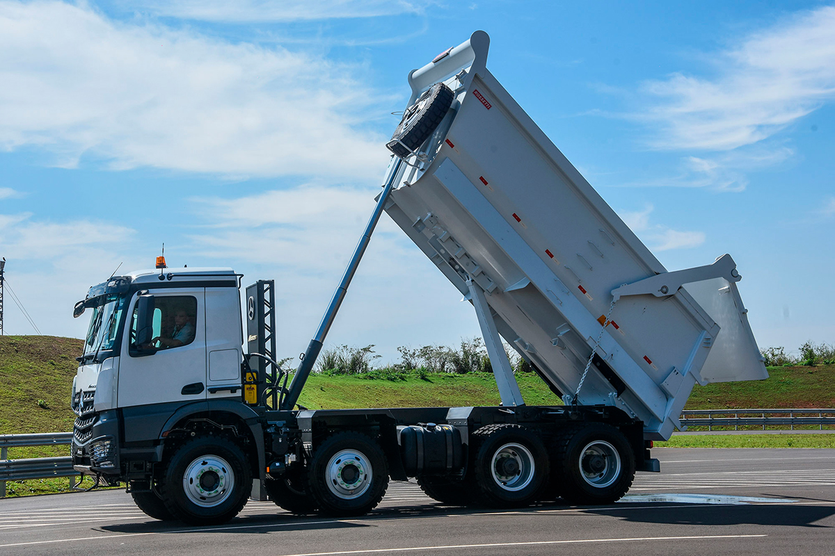 Arocs 8×4 pode receber básculas de 20 a 24 metros cúbicos