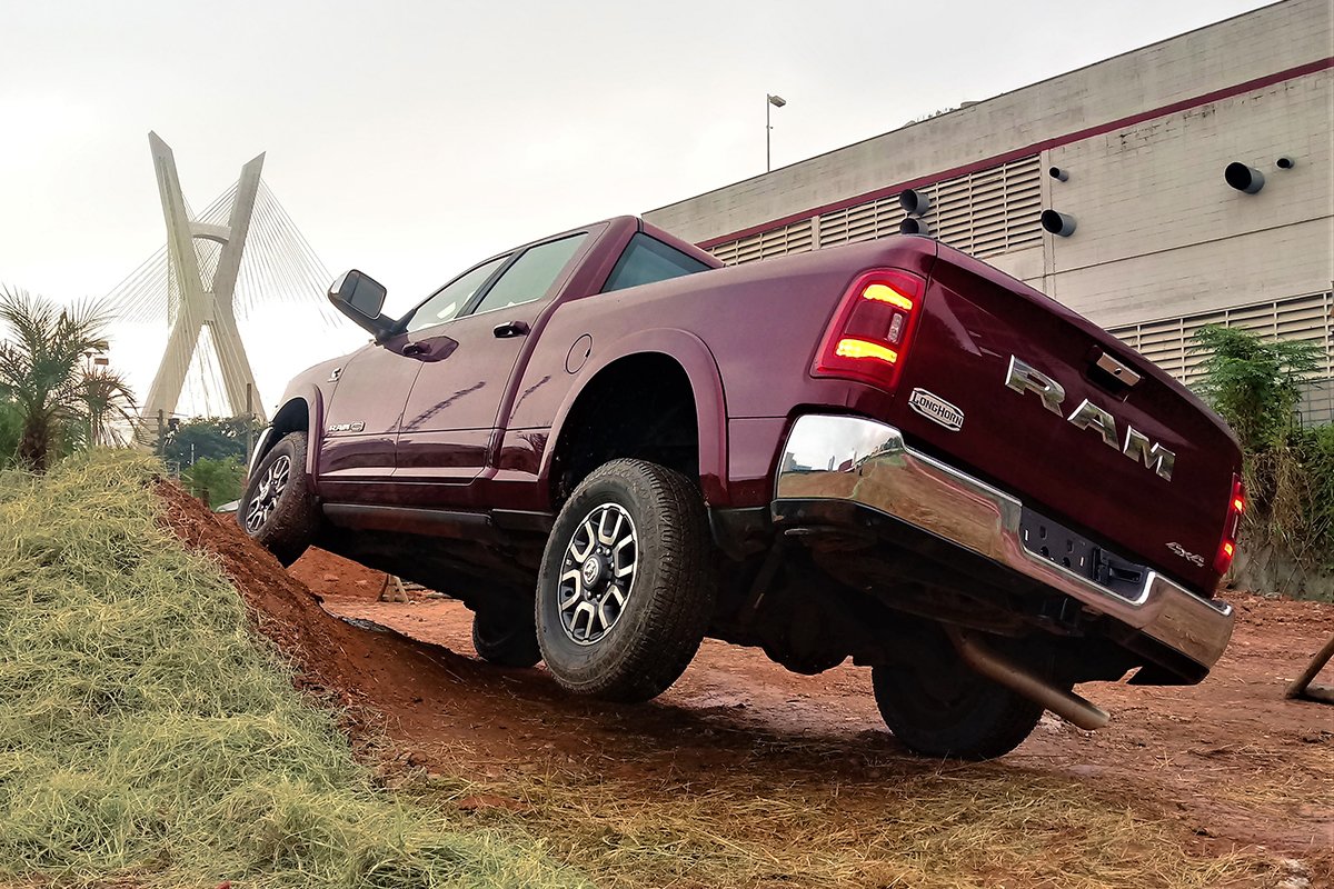 Para tanto, foi montada uma pista off-road com obstáculos variados, onde se pode sentir, por exemplo, o poderio do motor Cummins® de 6,7 litros e 377 cv, que faz a Ram 3500 ser a caminhonete a diesel mais potente no país. Outro destaque do propulsor é o torque de 1.150 Nm, de longe o maior da categoria no país.