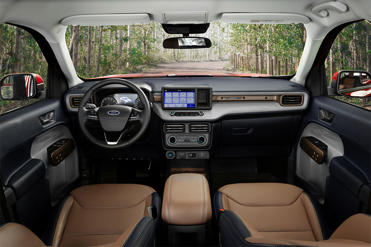 Essa proximidade com o público urbano se dá quando vemos as medidas da Maverick. Ainda quando se compara à Ranger, as medidas da nova picape são um pouco menores – cerca de 0,30 cm menor no comprimento e mais próxima ao chão. Ela mede 5,11 m de comprimento, 1,74 m de altura e 1,84 m de largura (sem espelhos), com entre-eixos de 3,07 m.