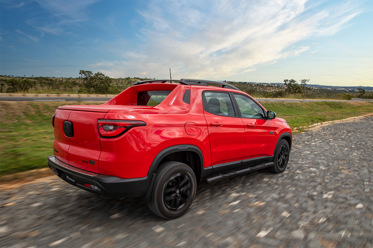 Na versão Ultra, a Toro tem santantonio, bolsa para cargas sensíveis e capota rígida com braços pneumáticos. Também traz câmera de ré, painel de instrumentos digital e tela multimídia na forma de tablet, conexão sem fio e interior todo escurecido, o que agrada os motoristas esportivos e os conectados.