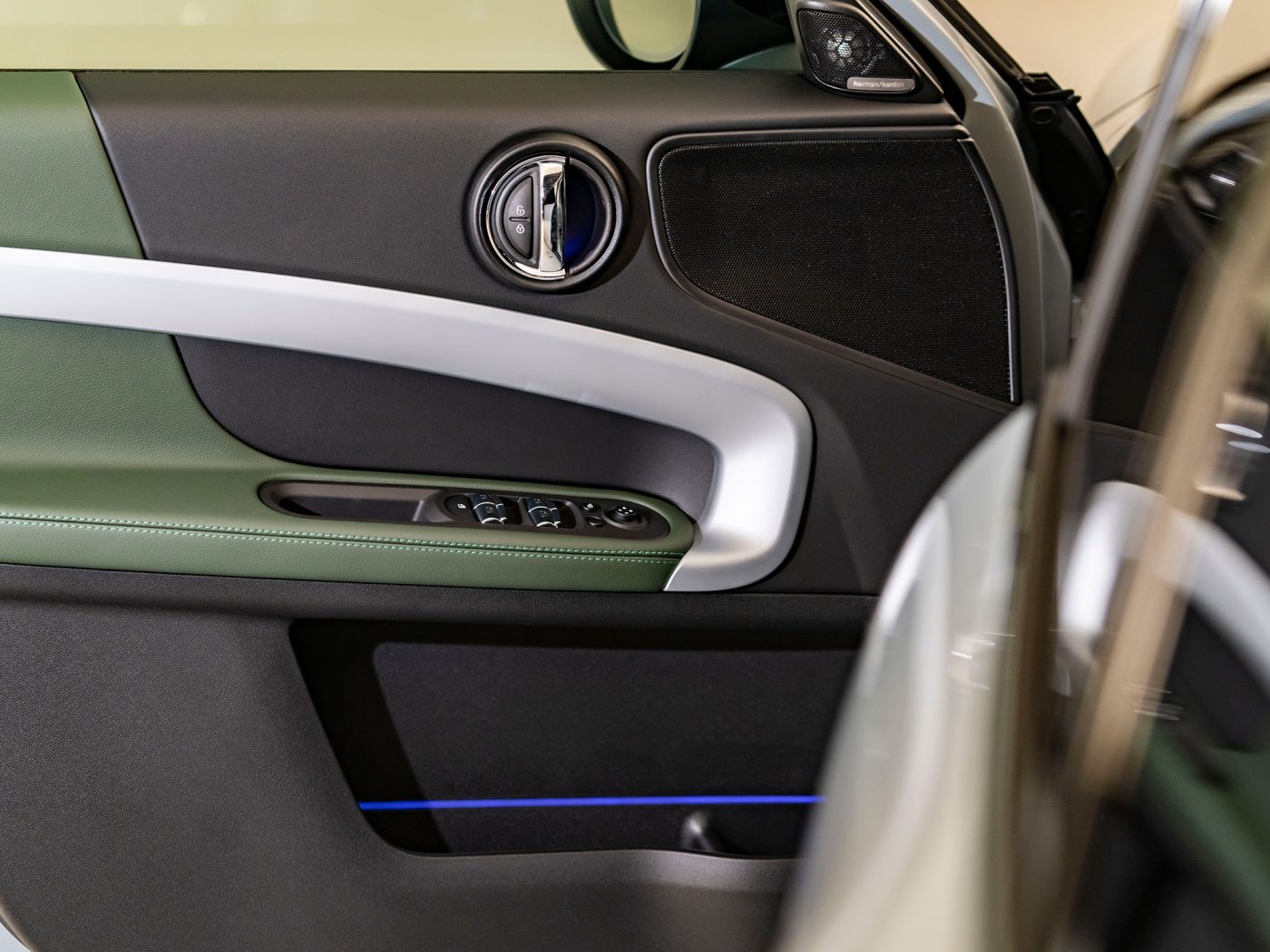Por dentro, tons de verde e azul, inspirados na natureza, dominam o design interior do MINI Countryman na versão Untamed Edition. O revestimento em couro Highland Green, outro elemento exclusivo desta série especial é combinado com costuras contrastantes em azul e verde. Além, claro, do nome Untamed Edition estar gravado no carro em diversas áreas, como nos tapetes, bancos, painel, soleira das portas, entre outros.
