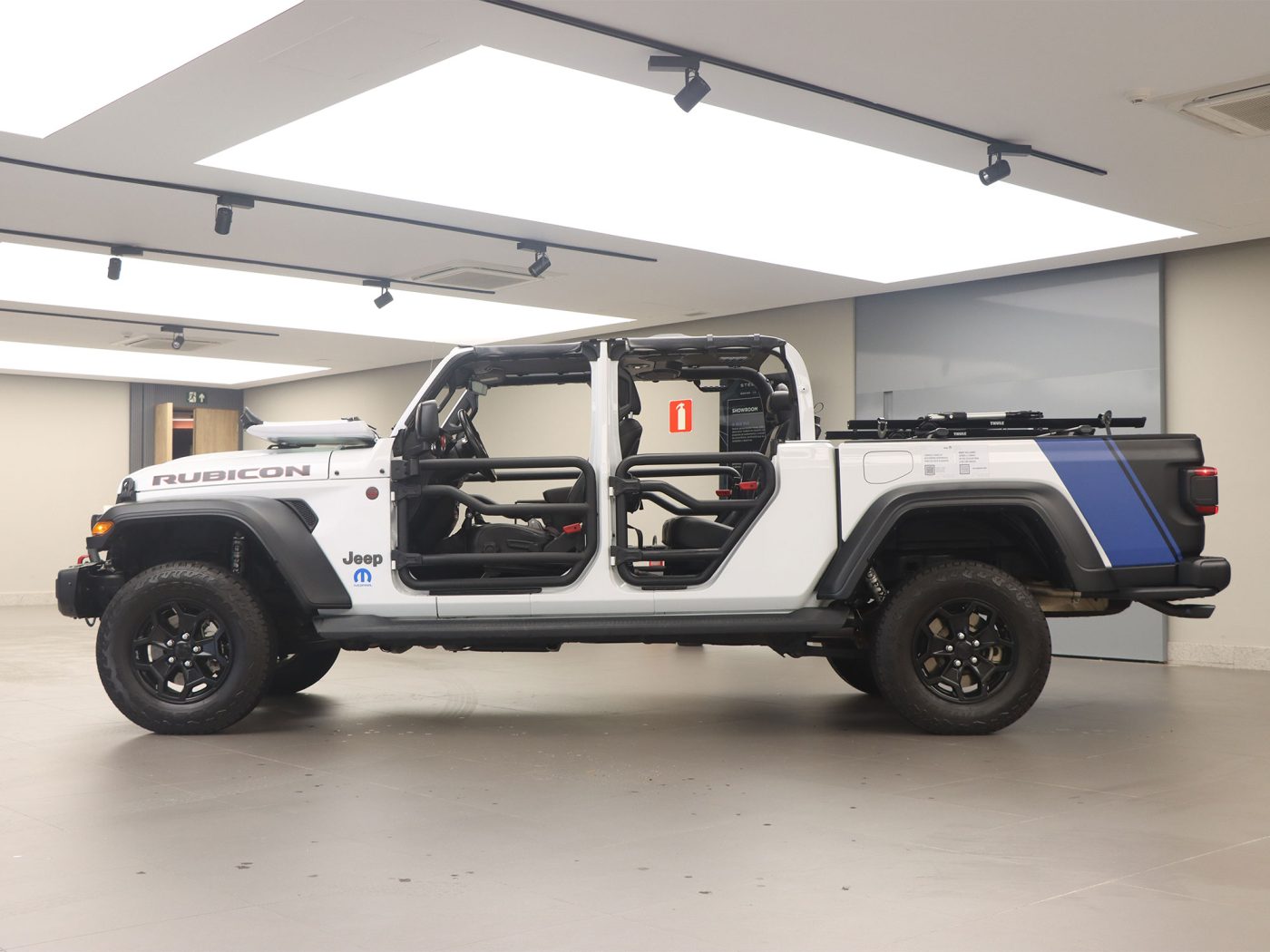 Para mostrar uma fração dessas possibilidades, a Mopar equipou um Jeep Gladiator Rubicon na cor Branco Bright com mais de dez itens do portfólio, entre os quais se destacam: