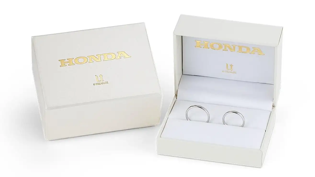 Uma joalheria no Japão está vendendo alianças de casamento com o selo de aprovação da Honda. Embora provavelmente não haja um número de peça Honda ou Acura real para as alianças de platina da U-Treasure, os conjuntos de anéis ainda são oficialmente sancionados pela Big Red na forma de logotipos icônicos, que estão gravados no interior dos anéis.