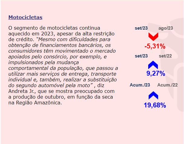 “Apesar da queda em setembro, justificada pelo número menor de dias úteis, de maneira geral, o mercado demonstrou recuperação nas vendas diárias em relação a agosto. No entanto, os desafios do setor automotivo permanecem, com o crédito restrito e a diminuição do poder de compra da população ainda dificultando o acesso das pessoas a veículos novos”, analisa Andreta Jr., Presidente da FENABRAVE.
