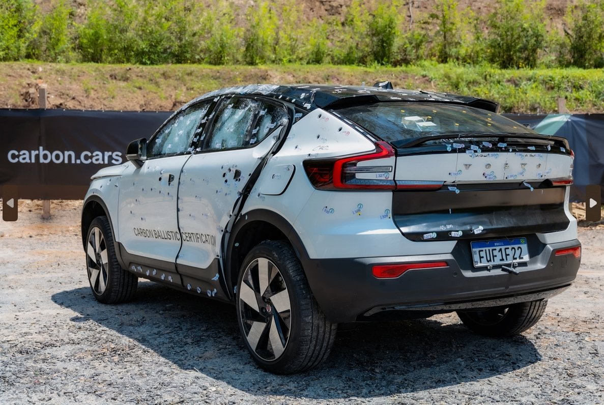 Para a avaliação dos modelos EX30, C40 e XC40, foram utilizados projéteis de 9mm e .44 disparados em ângulos de 90 e 45 graus relativos à blindagem, a uma distância de 5 metros do veículo – espaçamento exigido para que o projétil alcance sua força máxima na distância mais curta –, além de outros testes complementares para os presentes no evento.