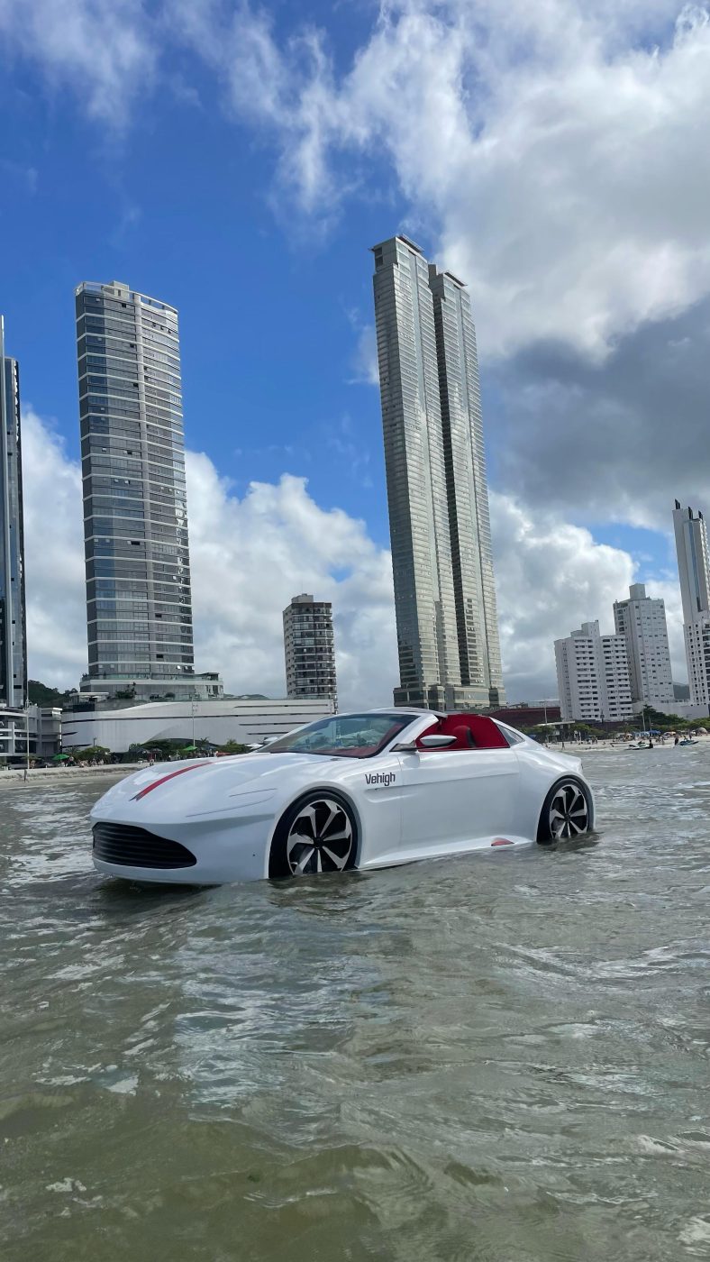 Recentemente viralizou nas redes sociais imagens de um carro andando sobre as águas do litoral catarinense. Seria um carro ou uma lancha? A resposta é: uma mistura dos dois. O aspecto exterior é exatamente o de um automóvel esportivo e o motor, velocidade e características como as de uma lancha. E esse veículo único tem atraído muitos curiosos e compradores.