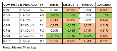 “No Amapá, os motoristas encontraram o diesel comum e o S-10 pelo preço médio mais caro de todo o País, e no Acre, a gasolina mais cara, comercializada à média de R$ 6,77. Quando comparado à gasolina, o etanol foi considerado mais vantajoso para abastecimento no Acre, Amazonas, Amapá e no Tocantins, além de ser ecologicamente mais viável, por oferecer menor impacto ao meio ambiente ao contribuir com a redução das emissões de gases responsáveis pelas mudanças climáticas”, destaca Douglas Pina, Diretor-Geral de Mobilidade da Edenred Brasil.