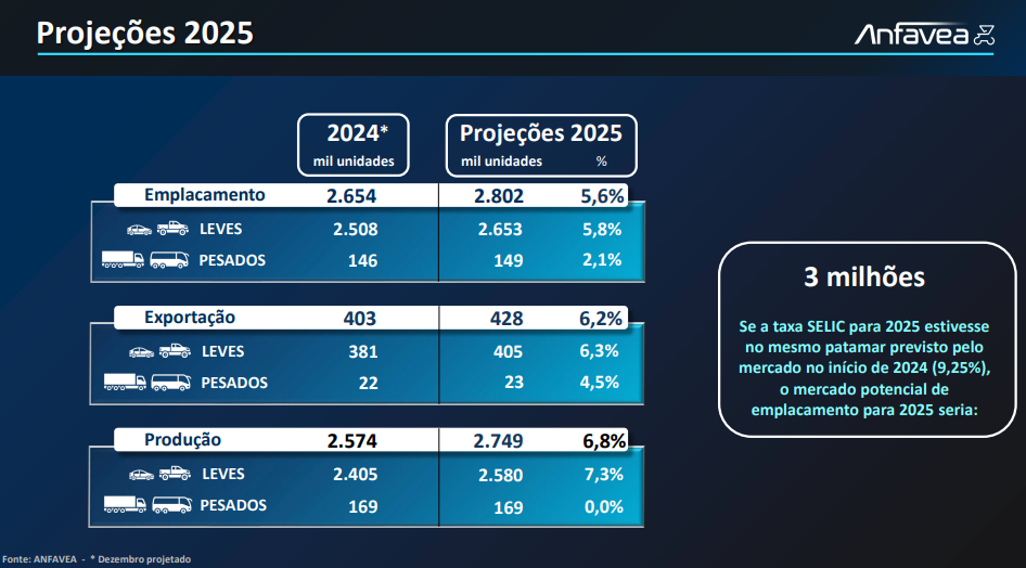 No entanto, o ano não foi perfeito; o primeiro semestre foi negativo para as exportações, e a entrada de 70 mil veículos chineses ainda sem compradores resultou numa balança comercial negativa pela primeira vez em dez anos. Por outro lado, a promessa de produção local por parte de marcas chinesas como BYD e GWM, com novas plantas em Camaçari (BA) e Iracemápolis (SP), respectivamente, além do anúncio de US$ 1 bilhão da GAC até 2029, sugere um futuro promissor. As projeções para 2025 são otimistas, com expectativas de crescimento tanto em vendas quanto em produção, indicando que o mercado brasileiro continuará em ascensão.