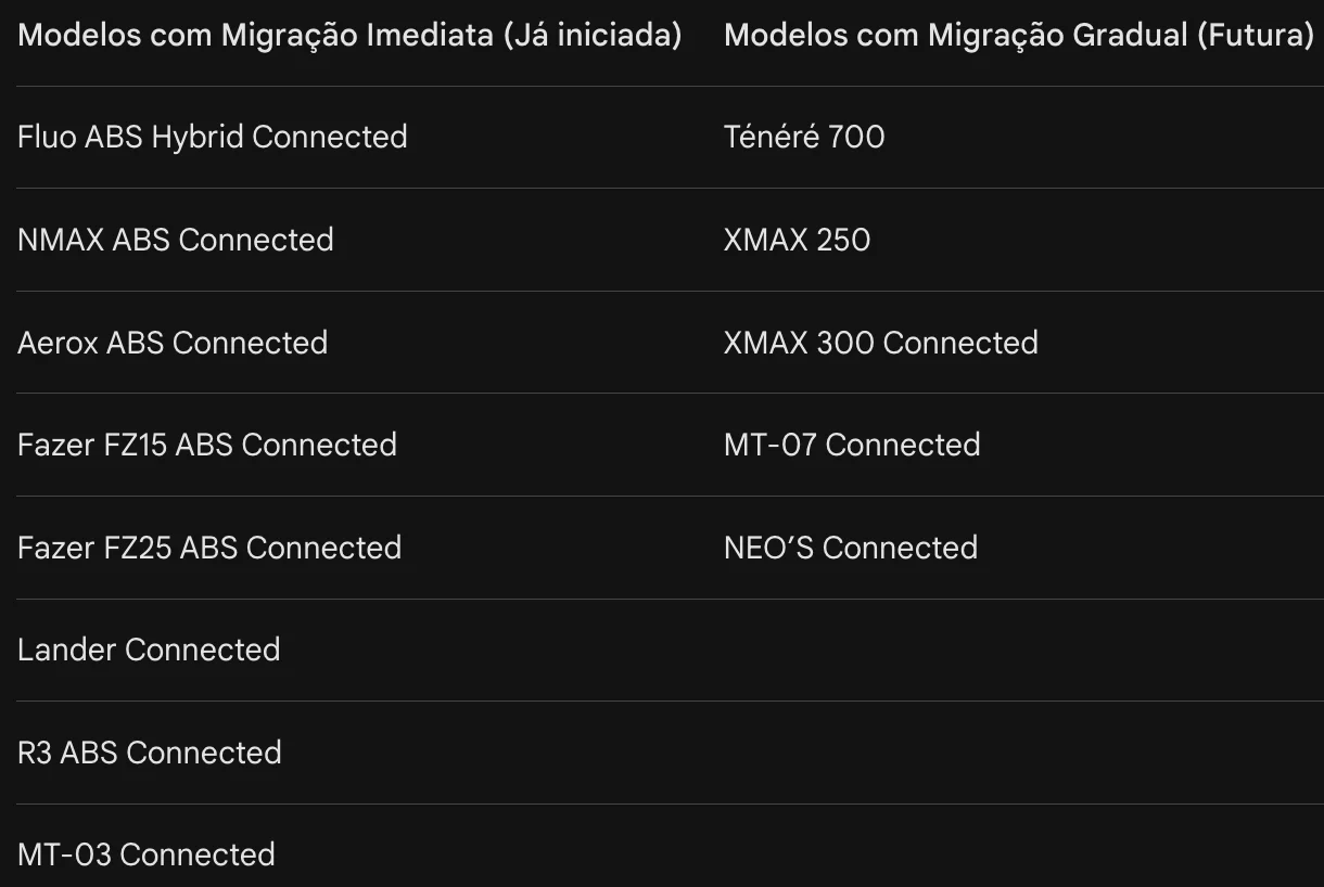 Apesar do entusiasmo com a nova plataforma, a Yamaha garante uma transição suave. O Y-Connect continuará funcionando normalmente até setembro de 2026. No entanto, a partir de outubro de 2026, a montadora desativará a função de novos pareamentos na plataforma antiga, tornando a migração obrigatória para quem quiser manter os serviços de conectividade ativos.